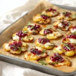 - Spoon about 1/2 to 1 teaspoon of cranberry sauce onto each Brie-topped potato. The tart-sweetness pairs beautifully with the creamy cheese. Scatter a little extra chopped rosemary or thyme on top. If using nuts, sprinkle them now for texture. A small drizzle of honey is a lovely optional finishing touch.