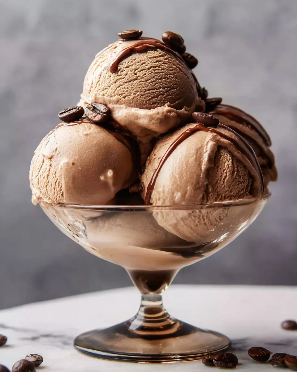 A simple and delicious homemade coffee ice cream that combines freshly brewed coffee with creamy, rich textures for the perfect treat.