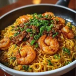 Have you ever come home craving something warm and a little spicy, the kind of meal that makes you kick off your shoes and sigh with relief? I sure have—once after a rainy day I burned my first attempt at takeout-style noodles and learned the hard way that less heat and more timing make all the difference. If you’re new to wok-style cooking or juggling shrimp and ground meat at the same time feels intimidating, I promise this recipe is forgiving: straightforward ingredients, quick cook time, and a cozy result. If you like rich garlic shrimp, you might also enjoy my take on a creamy garlic shrimp recipe for another weeknight option.