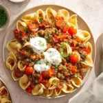 Turkish Pasta is a comforting dish made with pasta, seasoned ground beef, and a creamy yogurt sauce. It’s a simple, hearty meal that combines various flavors and textures.