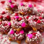 A2: Yes—Valentine’s Day Caramel Pretzel Bites are great made a day in advance. After they set, store them in a covered container at room temperature or briefly refrigerate if your space is warm. Add fresh sprinkles or a small dusting of powdered sugar just before serving if you want them looking extra fresh.